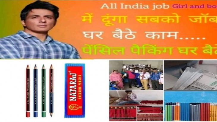 अभिनेता सोनू सूद सभी के लिए नौकरी की व्यवस्था कर रहे हैं और इसके लिए उन्होंने कहा कि, इस नंबर पर कॉल करो भाई और नटराज पेन कंपनी में नौकरी पाओ । पूरा मामला समझने के लिए पहले ये पढ़ें: 'हिंदुस्तान नटराज पेंशन योजना घर से नौकरी घर पर करने की लेडीज और पुरुष सभी के लिए जॉब अवेलेबल ऑल इंडिया जॉब कंपनी ₹30000 सैलरी है 15,000 एडवांस मैट्रियल के साथ कंपनी का कॉलिंग नंबर 8293350972 कंपनी का व्हाट्सएप नंबर 8293350972'। अब आप समझ ही चुके होंगे की इन टेक्स्ट के साथ सोनू सूद की तस्वीर को लगाया गया हैं ।