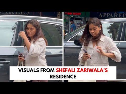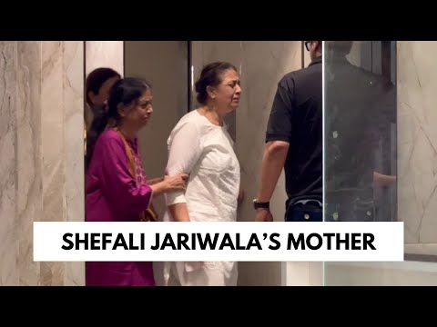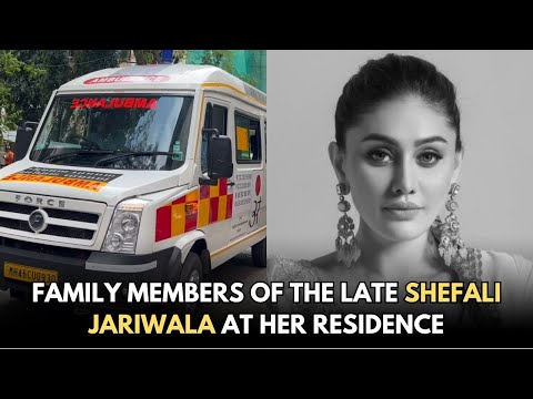 Family members of the late Shefali Jariwala pay their respects as they arrive at...